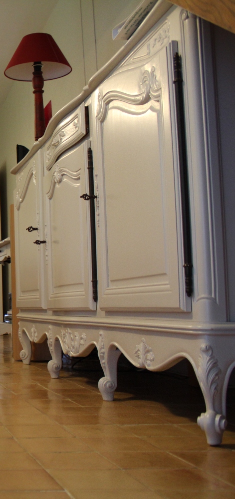 Salle à manger, comprenant table et chaises pour 8 personnes, buffet avec vaisselle.